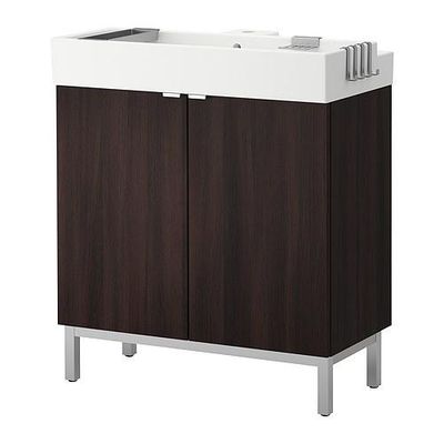 ЛИЛЛОНГЕН Шкаф под раковину с 2 дверц - черно-коричневый, 80x41x92 см