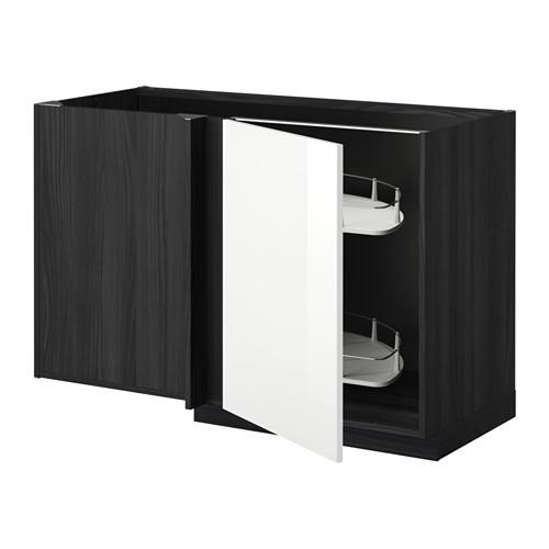 МЕТОД Угловой напол шкаф с выдвижн секц - под дерево черный, Рингульт глянцевый белый