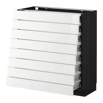 МЕТОД / ФОРВАРА Наполн шкаф 8 фронт/8 низк ящиков - под дерево черный, Рингульт глянцевый белый, 80x37 см