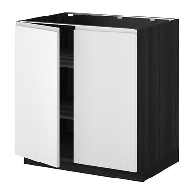 МЕТОД Напол шкаф с полками/2двери - 80x60 см, Нодста белый/алюминий, под дерево черный