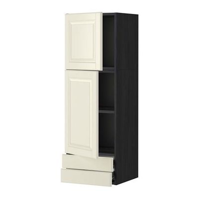 МЕТОД / ФОРВАРА Навесной шкаф/2дверцы/2ящика - 40x120 см, Будбин белый с оттенком, под дерево черный
