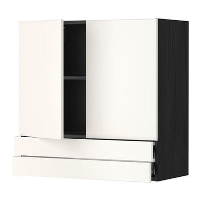 МЕТОД / ФОРВАРА Навесной шкаф/2дверцы/2ящика - 80x80 см, Веддинге белый, под дерево черный