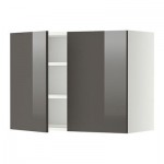 МЕТОД Навесной шкаф с полками/2дверцы - Рингульт глянцевый серый, белый
