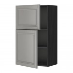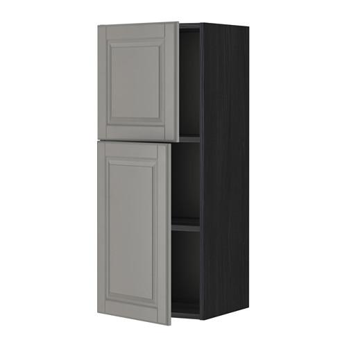 МЕТОД Навесной шкаф с полками/2дверцы - под дерево черный, Будбин серый, 40x100 см