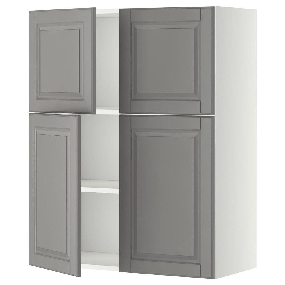 МЕТОД Навесной шкаф с полками/4дверцы - белый, Будбин серый