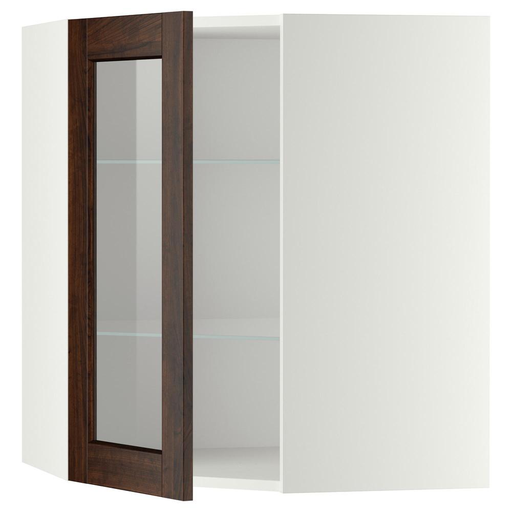 МЕТОД Углов навесн шк с полками/сткл дв - белый, Эдсерум под дерево коричневый, 68x80 см