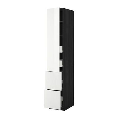 МЕТОД / ФОРВАРА Высокий шкаф+полки/4 ящика/2дверцы - 40x60x220 см, Рингульт глянцевый белый, под дерево черный