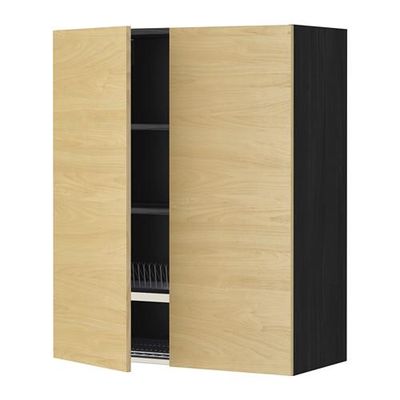 МЕТОД Навесной шкаф с посуд суш/2 дврц - 80x100 см, Тингсрид под березу, под дерево черный