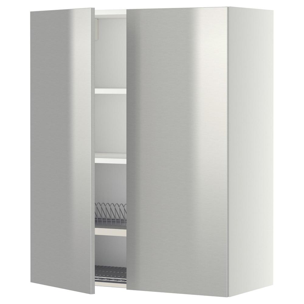 МЕТОД Навесной шкаф с посуд суш/2 дврц - белый, Гревста нержавеющ сталь, 80x100 см