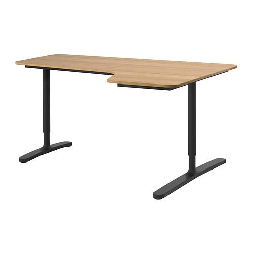 БЕКАНТ Углов письм стол правый - дубовый шпон/черный