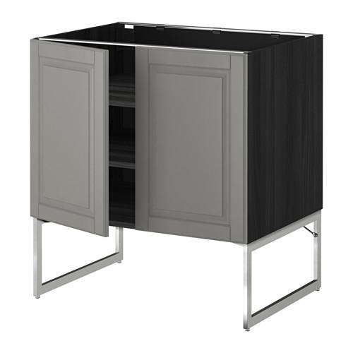 МЕТОД Напол шкаф с полками/2двери - под дерево черный, Будбин серый, 80x60x60 см