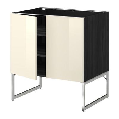 МЕТОД Напол шкаф с полками/2двери - 80x60x60 см, Рингульт глянцевый кремовый, под дерево черный