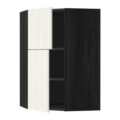 МЕТОД Угловой навесной шкаф+полки/2дверцы - Росдаль белый ясень, под дерево черный