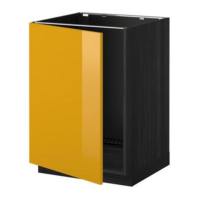 МЕТОД Напольный шкаф для раковины - Ерста глянцевый желтый, под дерево черный