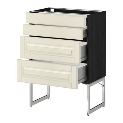 МЕТОД / ФОРВАРА Нплн шк 4 фронт/2 низк/2средн ящ - 60x37x60 см, Будбин белый с оттенком, под дерево черный