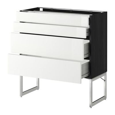МЕТОД / ФОРВАРА Нплн шк 4 фронт/2 низк/2средн ящ - 80x37x60 см, Рингульт глянцевый белый, под дерево черный