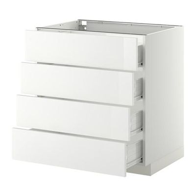 МЕТОД / ФОРВАРА Напольн шкаф 4 фронт панели/4 ящика - 80x60 см, Рингульт глянцевый белый, белый