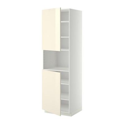 МЕТОД Выс шкаф д/СВЧ/2 дверцы/полки - 60x60x200 см, Рингульт глянцевый кремовый, белый