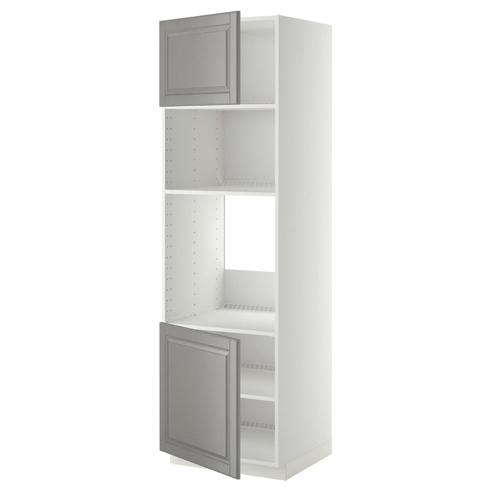 МЕТОД Выс шкаф д/духовки/СВЧ/2 дв/полки - белый, Будбин серый, 60x60x200 см