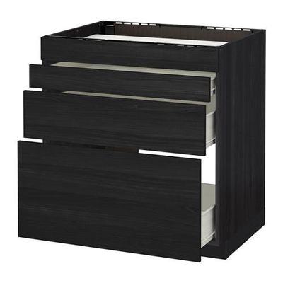 МЕТОД / ФОРВАРА Нап шкаф д/духовки/4фасада/3ящика - 80x60 см, Тингсрид под дерево черный, под дерево черный