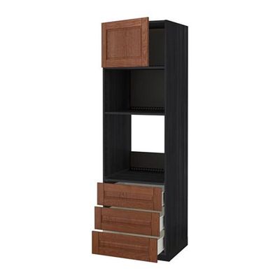 МЕТОД / ФОРВАРА Высок шкаф д/духовки/СВЧ/дверца/3ящ - 60x60x200 см, Филипстад коричневый, под дерево черный