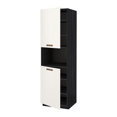 МЕТОД Выс шкаф д/СВЧ/2 дверцы/полки - 60x60x200 см, Мэрста белый, под дерево черный