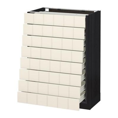 МЕТОД / ФОРВАРА Наполн шкаф 8 фронт/8 низк ящиков - под дерево черный, Хитарп белый с оттенком, 60x37 см