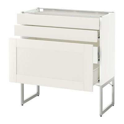 МЕТОД / ФОРВАРА Напольн шкаф 3фронт пнл/2низ/2ср ящ - 80x37x60 см, Сэведаль белый, белый