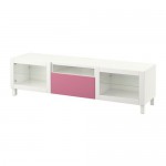 БЕСТО Тумба под ТВ, с дверцами и ящиками - Лаппвикен розовый/Синдвик белый прозрачное стекло, направляющие ящика,нажимные
