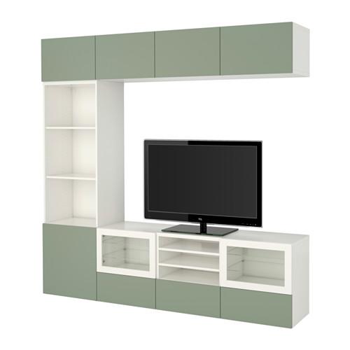 БЕСТО Шкаф для ТВ, комбин/стеклян дверцы - Лаппвикен зеленый/Синдвик белый прозрачное стекло, направляющие ящика, плавно закр