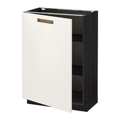 МЕТОД Напольный шкаф с полками - 60x37 см, Мэрста белый, под дерево черный