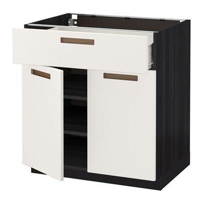 МЕТОД / ФОРВАРА Напольный шкаф+ящик/2дверцы - 80x60 см, Мэрста белый, под дерево черный
