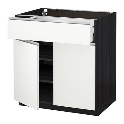 МЕТОД / МАКСИМЕРА Напольный шкаф+ящик/2дверцы - 80x60 см, Нодста белый/алюминий, под дерево черный