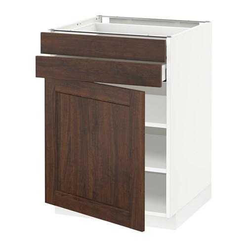 МЕТОД / МАКСИМЕРА Напольный шкаф с дверцей/2 ящиками - белый, Эдсерум под дерево коричневый, 60x60 см