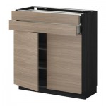 МЕТОД / МАКСИМЕРА Напольный шкаф/2дверцы/2ящика - 80x60 см, Брокхульт под грецкий орех светло-серый, под дерево черный