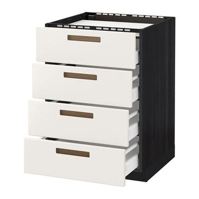 МЕТОД / МАКСИМЕРА Напольн шкаф/4фронт пнл/4ящика - 60x60 см, Мэрста белый, под дерево черный