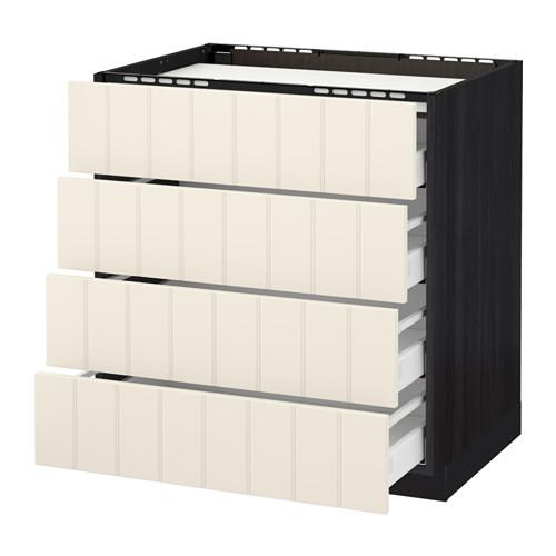МЕТОД / МАКСИМЕРА Напольн шкаф/4фронт пнл/4ящика - под дерево черный, Хитарп белый с оттенком, 80x60 см