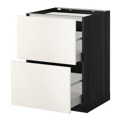 МЕТОД / МАКСИМЕРА Напольн шкаф/2фронт пнл/3ящика - 60x60 см, Веддинге белый, под дерево черный