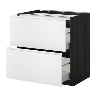 МЕТОД / МАКСИМЕРА Напольн шкаф/2фронт пнл/3ящика - 80x60 см, Нодста белый/алюминий, под дерево черный