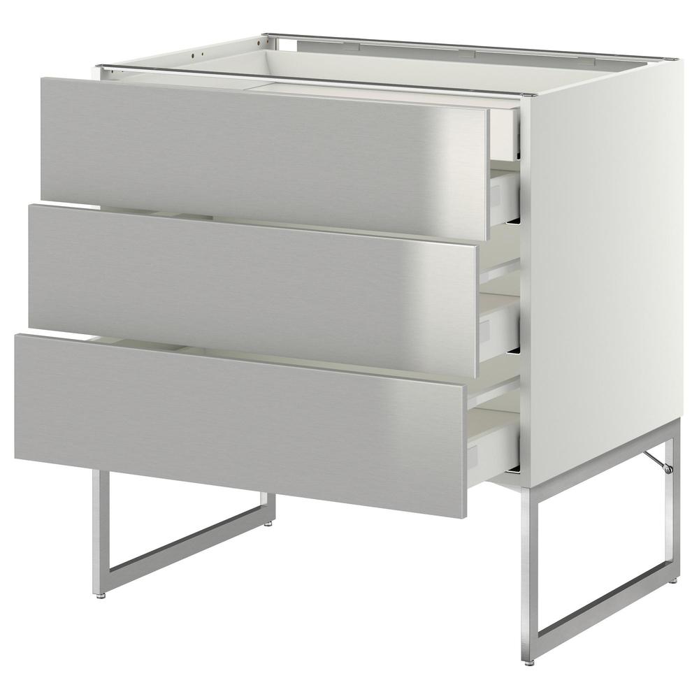 МЕТОД / МАКСИМЕРА Напольн шкаф 3фронт пнл/2низ/2ср ящ - белый, Гревста нержавеющ сталь, 80x60x60 см