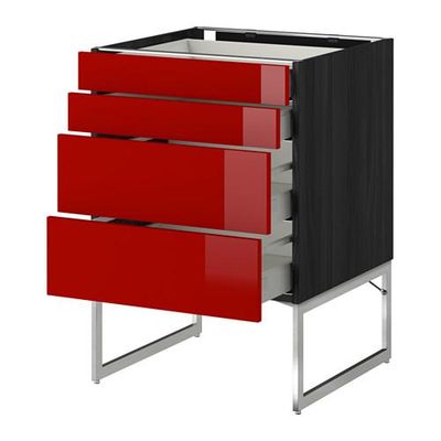 МЕТОД / МАКСИМЕРА Нплн шк 4 фронт/2 низк/2средн ящ - 60x60x60 см, Рингульт глянцевый красный, под дерево черный