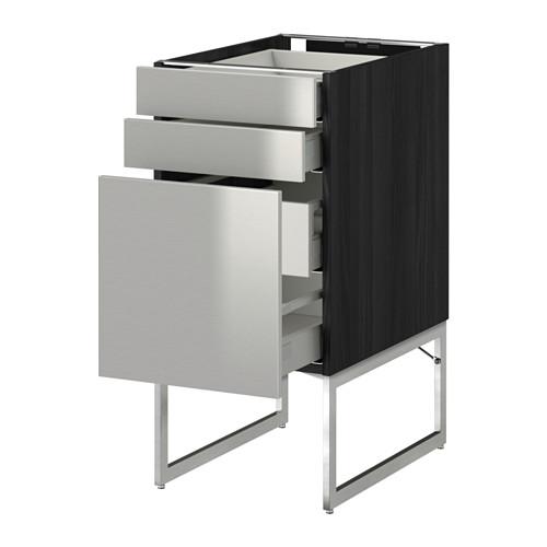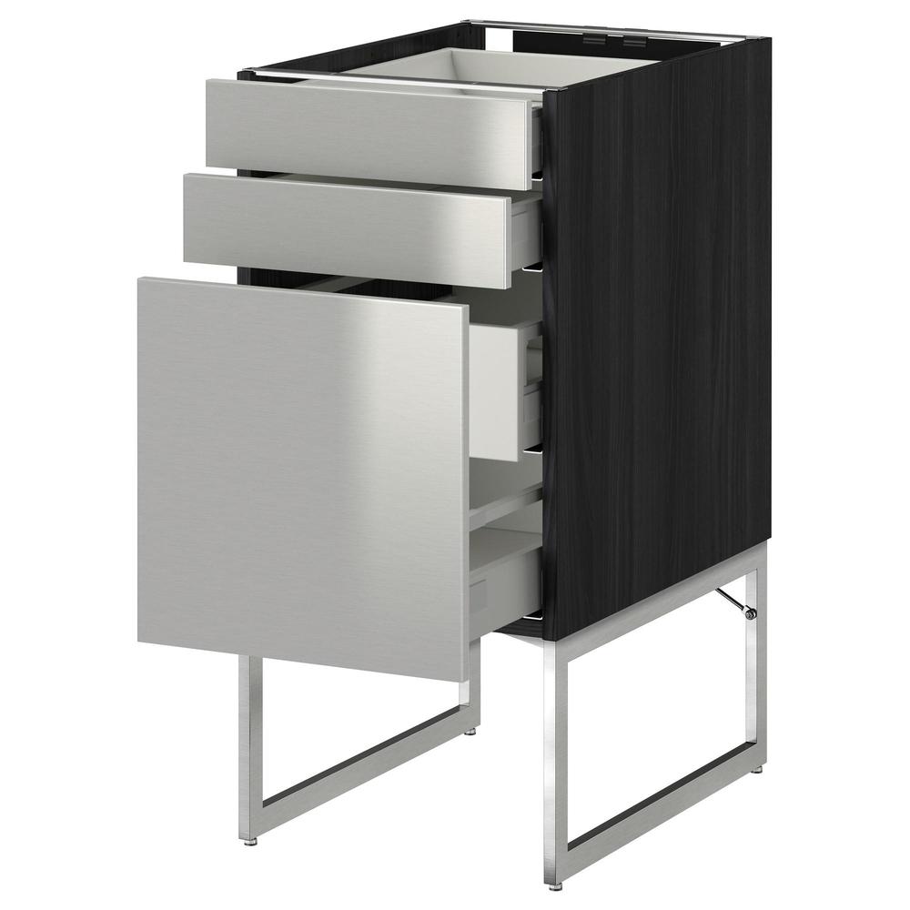 МЕТОД / МАКСИМЕРА Напольн шкаф 3фронт пнл/2низ/2ср ящ - под дерево черный, Гревста нержавеющ сталь, 40x60x60 см