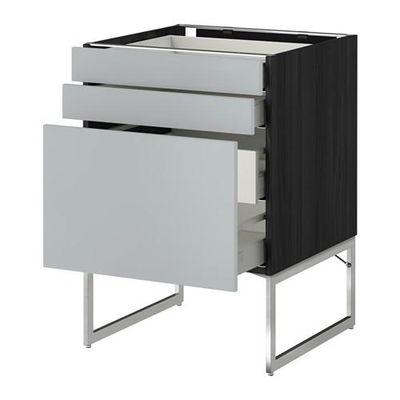 МЕТОД / МАКСИМЕРА Напольн шкаф 3фронт пнл/2низ/2ср ящ - 60x60x60 см, Веддинге серый, под дерево черный