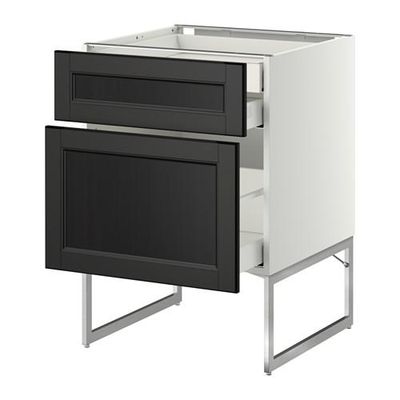 МЕТОД / МАКСИМЕРА Напольн шкаф 2фронт пнл/2низ/1вс ящ - 60x60x60 см, Лаксарби черно-коричневый, белый