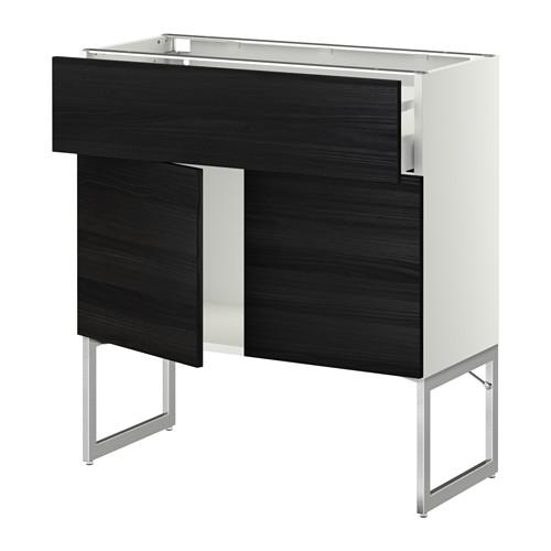 МЕТОД / МАКСИМЕРА Напол шкаф/полки/ящик/2двери - белый, Тингсрид под дерево черный, 80x37x60 см