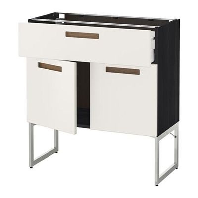 МЕТОД / МАКСИМЕРА Напол шкаф/полки/ящик/2двери - 80x37x60 см, Мэрста белый, под дерево черный