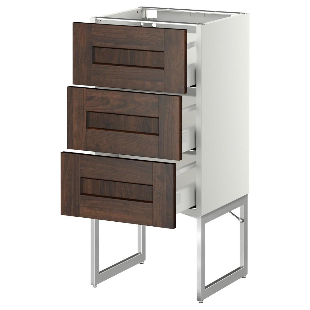 МЕТОД / МАКСИМЕРА Нплн шк 3 фрнт/3 средн ящика - белый, Эдсерум под дерево коричневый, 40x37x60 см