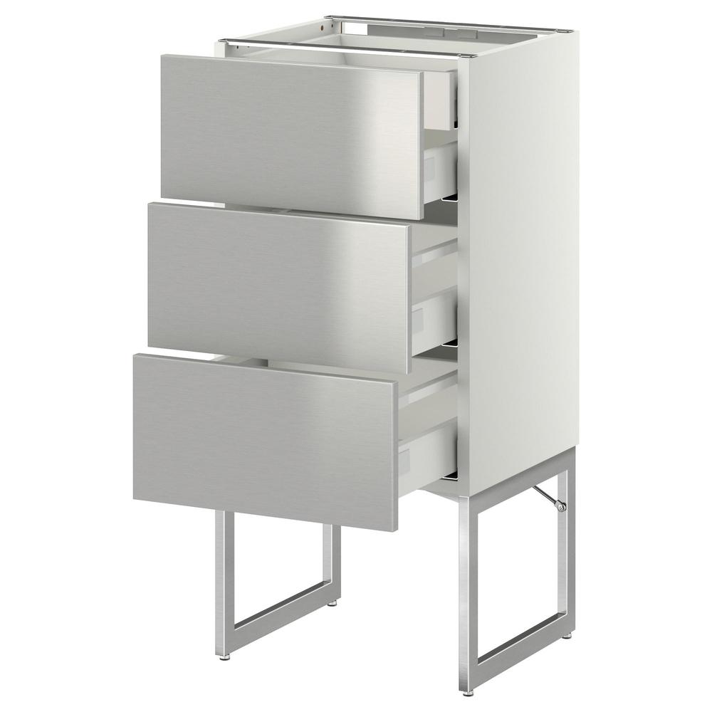МЕТОД / МАКСИМЕРА Напольн шкаф 3фронт пнл/2низ/2ср ящ - белый, Гревста нержавеющ сталь, 40x37x60 см