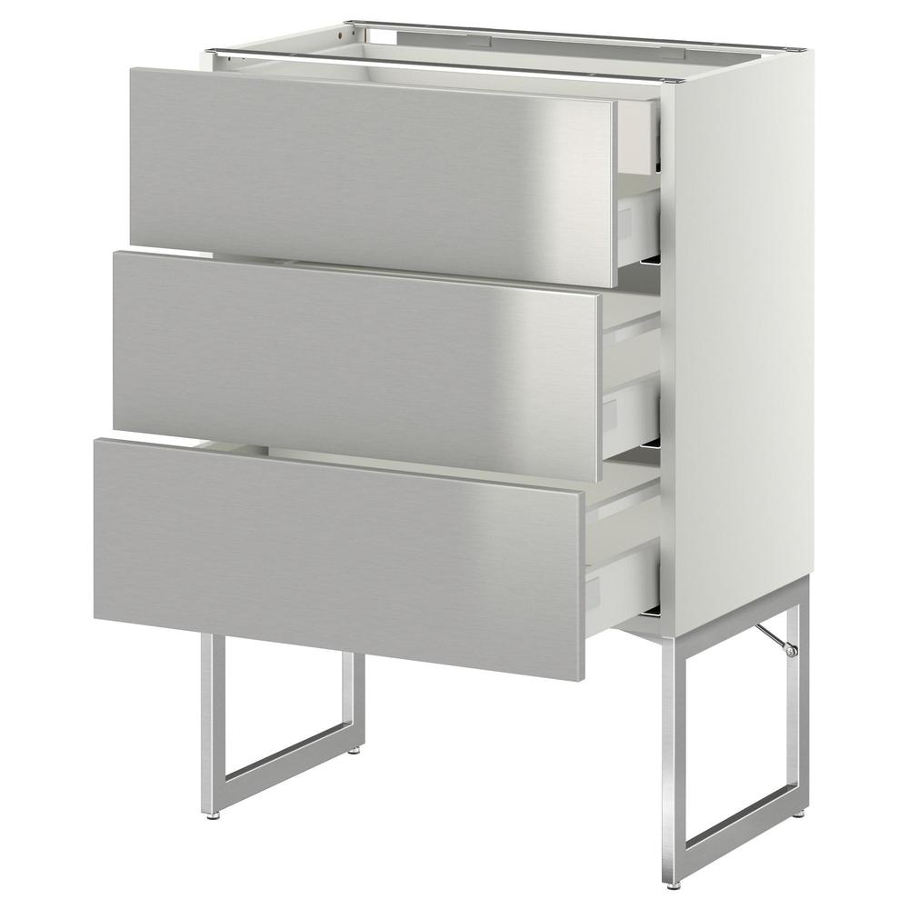 МЕТОД / МАКСИМЕРА Напольн шкаф 3фронт пнл/2низ/2ср ящ - белый, Гревста нержавеющ сталь, 60x37x60 см