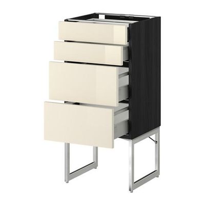 МЕТОД / МАКСИМЕРА Нплн шк 4 фронт/2 низк/2средн ящ - 40x37x60 см, Рингульт глянцевый кремовый, под дерево черный